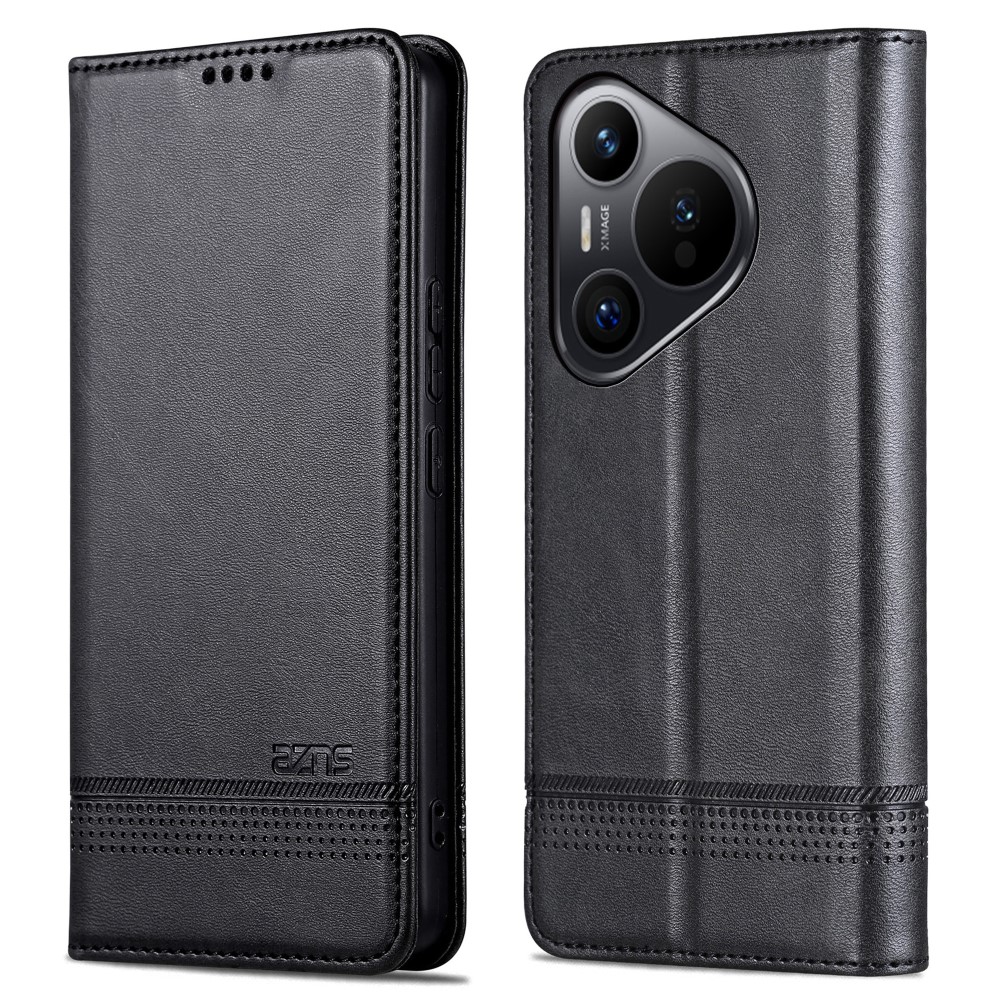 Θήκη Huawei Pura 70 AZNS Litchi Retro V4 Texture Leather με βάση στήριξης, υποδοχές καρτών και μαγνητικό κούμπωμα μαύρο