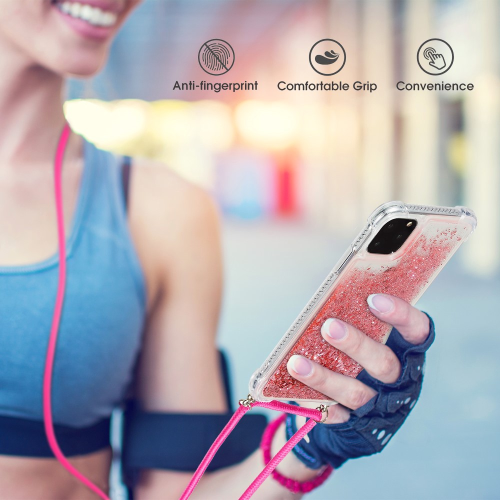 Θήκη iPhone 12 Pro Max OEM πλάτη με κορδόνι και διακριτική σκόνη γκλίτερ άμμου από αντικραδασμικό TPU φούξια
