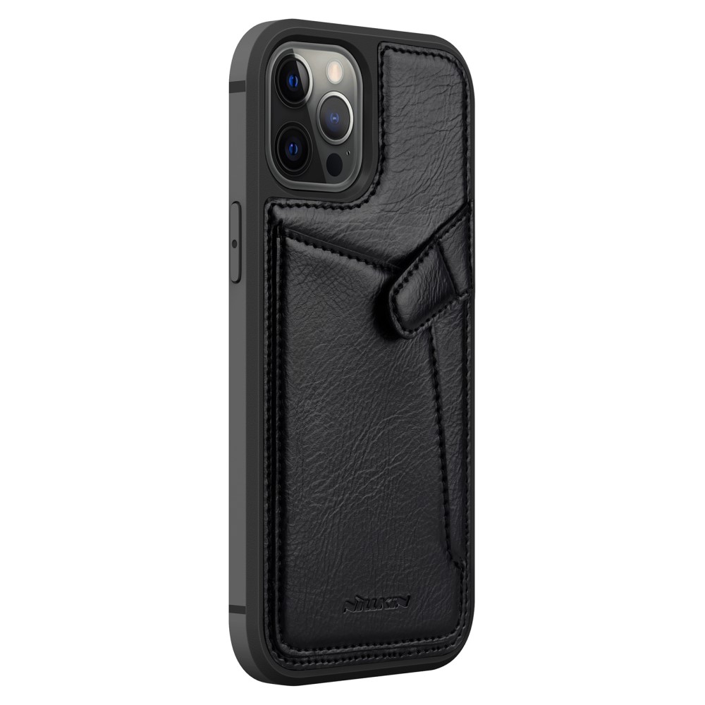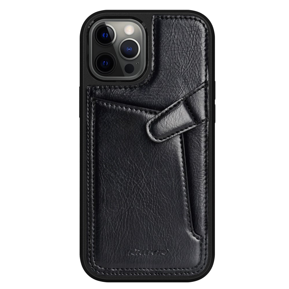 Θήκη iPhone 12 Pro Max NiLLkin Aoge Series πλάτη δερμάτινη με υποδοχή κάρτας και αντικραδασμικό Premium TPU μαύρο