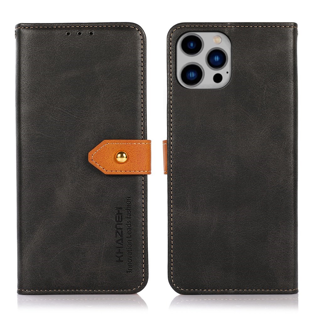 Θήκη iPhone 14 Plus KHAZNEH Leather Wallet Golden Clasp με βάση στήριξης, υποδοχές καρτών και μαγνητικό κούμπωμα μαύρο