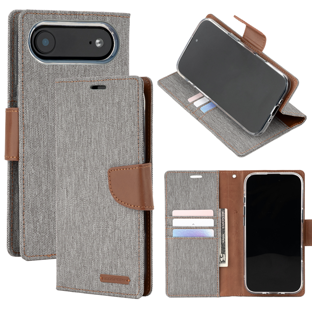 Θήκη Mercury Goospery® Canvas Diary book με βάση στήριξης, υποδοχές καρτών και μαγνητικό κούμπωμα για iPhone 17 Air – γκρι/ καφέ
