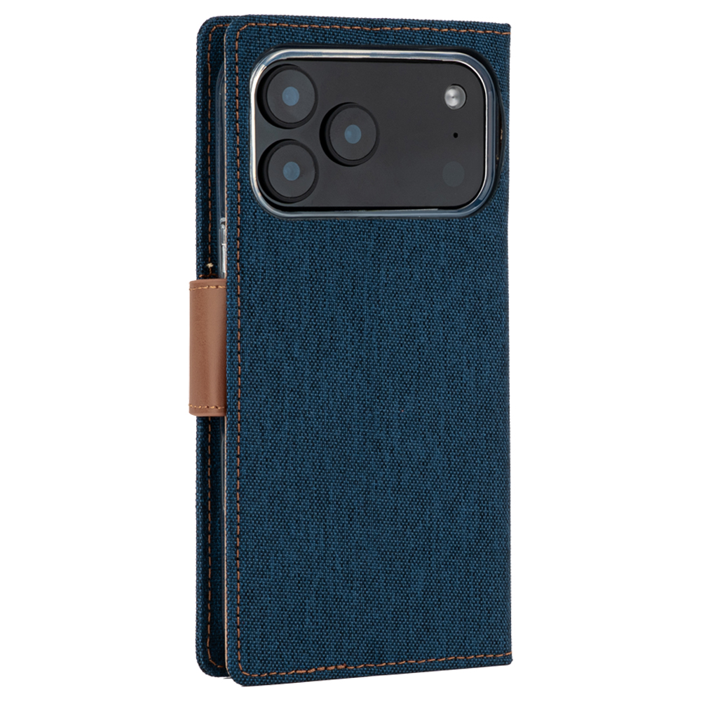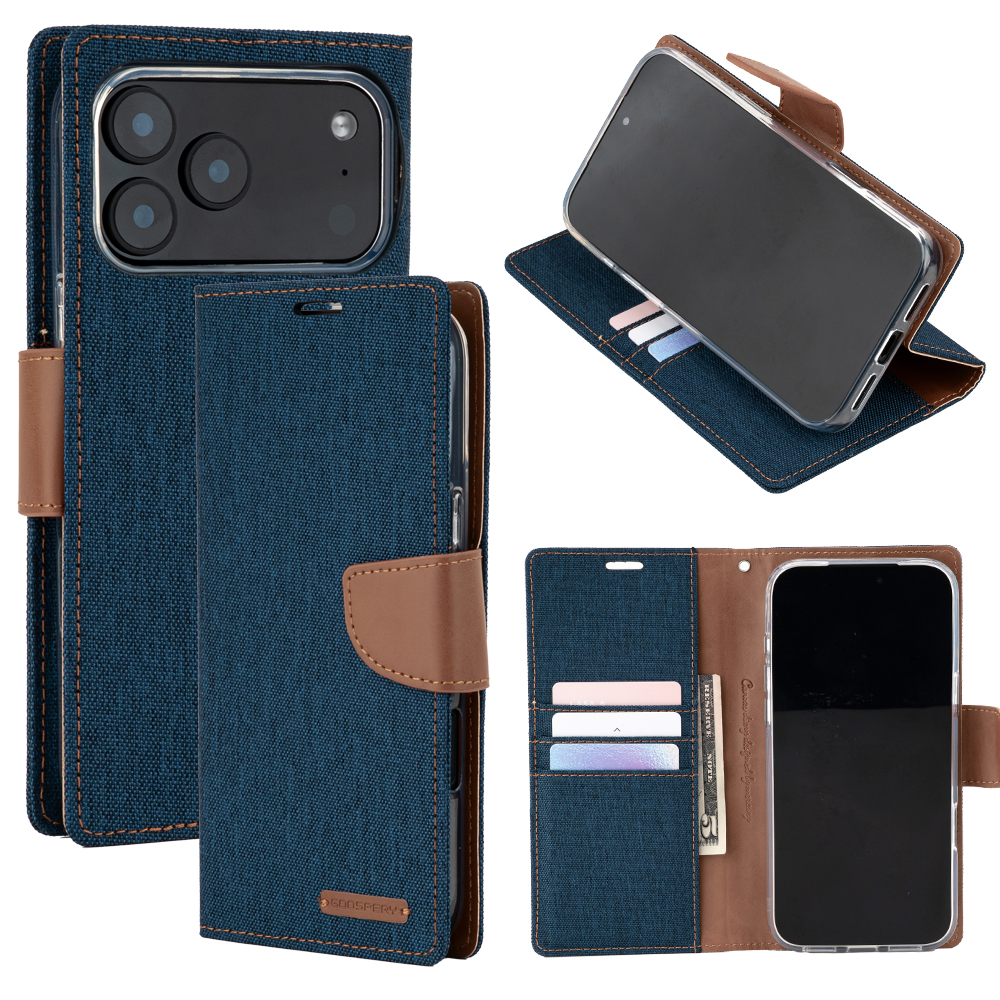 Θήκη Mercury Goospery® Canvas Diary book με βάση στήριξης, υποδοχές καρτών και μαγνητικό κούμπωμα για iPhone 17 Pro Max – μπλε/ καφέ