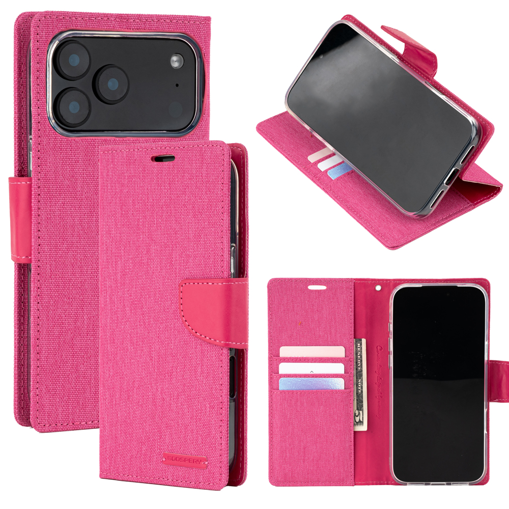Θήκη Mercury Goospery® Canvas Diary book με βάση στήριξης, υποδοχές καρτών και μαγνητικό κούμπωμα για iPhone 17 Pro Max – ροζ