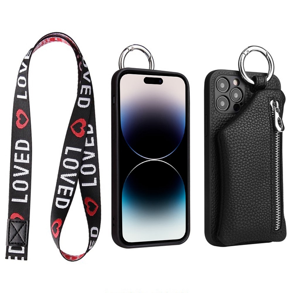 Θήκη iPhone 14 Pro Mad Mask πλάτη δερματίνης με κορδόνι και πορτοφόλι με φερμουαρ από αντικραδασμικό TPU κόκκινο