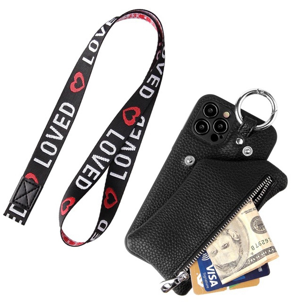 Θήκη iPhone 14 Pro Mad Mask πλάτη δερματίνης με κορδόνι και πορτοφόλι με φερμουαρ από αντικραδασμικό TPU μαύρο