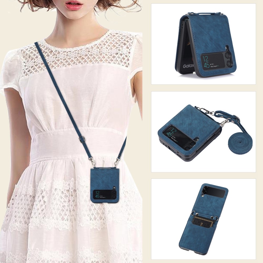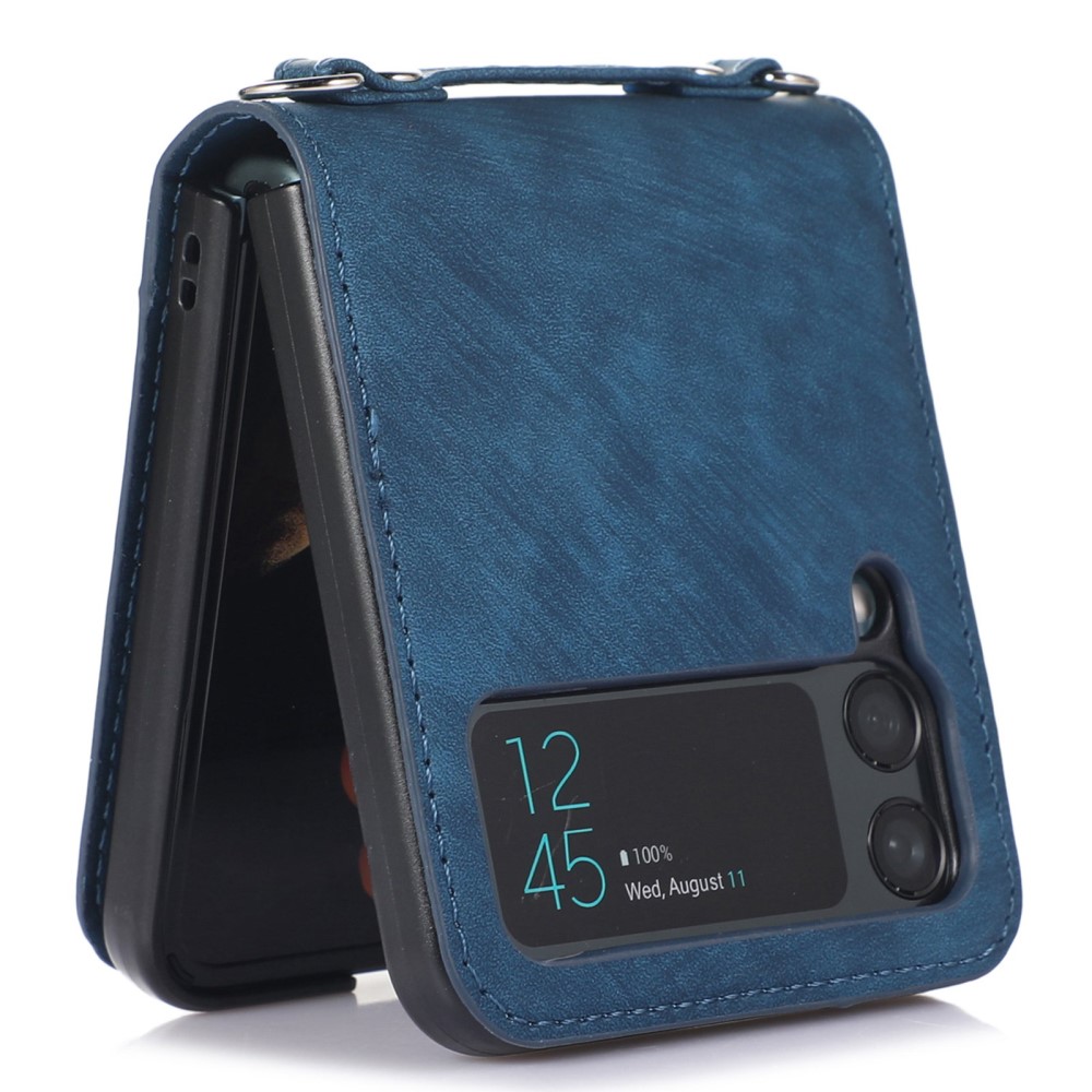 Θήκη Samsung Galaxy Z Flip4 5G Mad Mask Leather Wallet Case με κορδόνι για το λαιμό, υποδοχές καρτών Flip Wallet από συνθετικό δέρμα και σκληρό πλαστικό μπλε