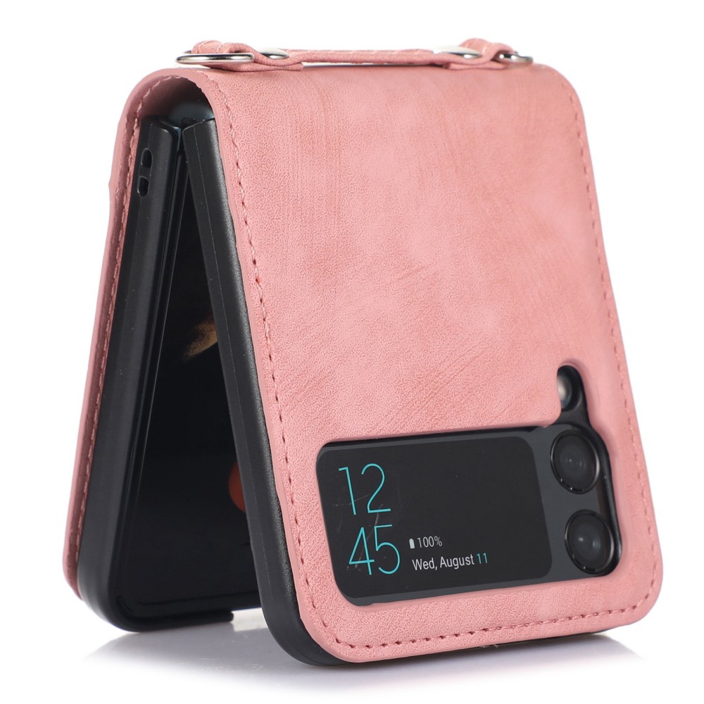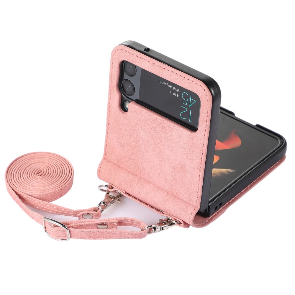 Θήκη Samsung Galaxy Z Flip4 5G Mad Mask Leather Wallet Case με κορδόνι για το λαιμό, υποδοχές καρτών Flip Wallet από συνθετικό δέρμα και σκληρό πλαστικό ροζ