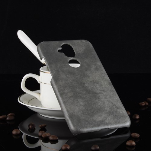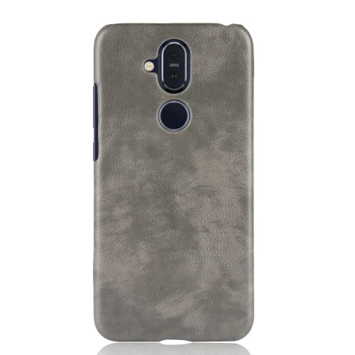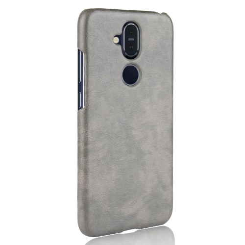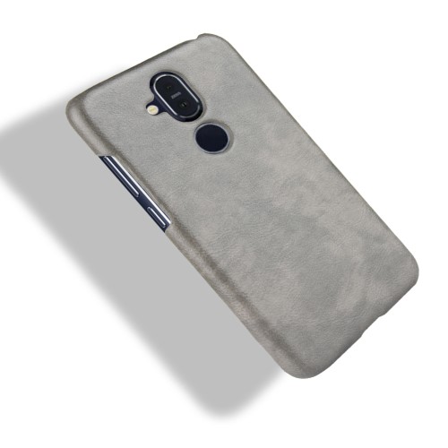 Θήκη Nokia 8.1 OEM Litchi Skin Leather Plastic Series Πλάτη από σκληρό πλαστικό γκρι