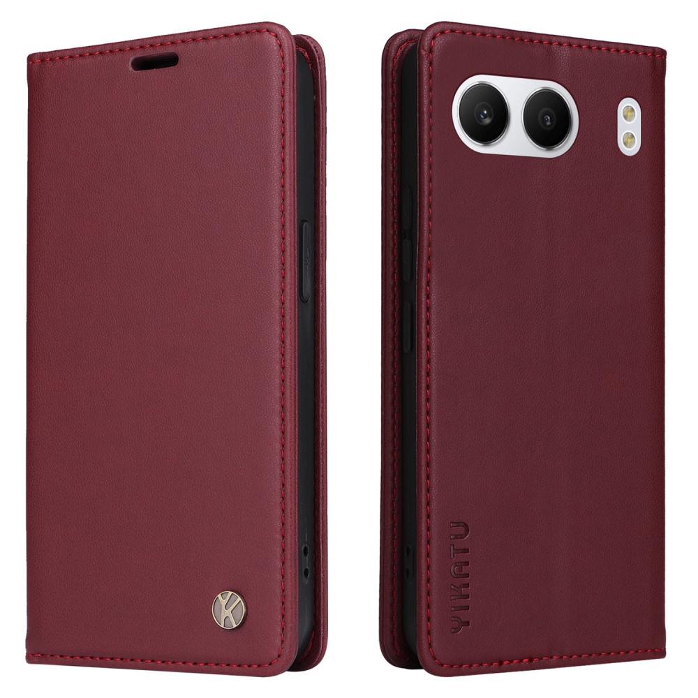 Θήκη OnePlus Nord 4 5G YIKATU Folio Series με βάση στήριξης, υποδοχή καρτών και μαγνητικό κούμπωμα Flip Wallet από συνθετικό δέρμα και TPU κόκκινο σκούρο