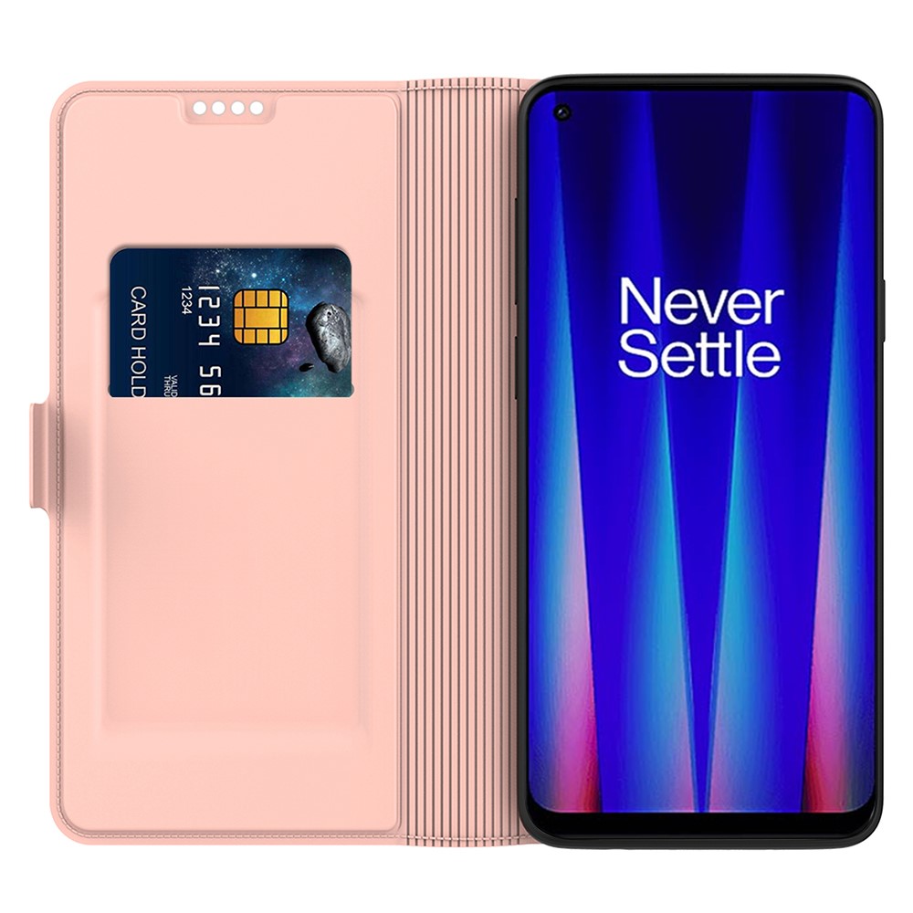 Θήκη OnePlus Nord N30 SE 5G OEM Skin Pro ultra thin V2 με βάση στήριξης, υποδοχή καρτών και μαγνητικό κούμπωμα Flip Wallet από συνθετικό δέρμα και TPU ροζ χρυσό