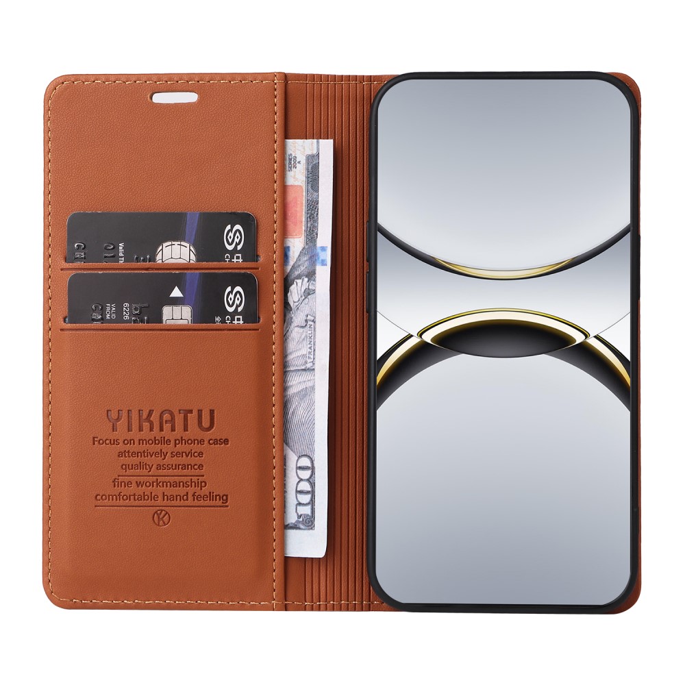 Θήκη Oppo Find X8 Pro 5G YIKATU Folio Series με βάση στήριξης, υποδοχή καρτών και μαγνητικό κούμπωμα Flip Wallet από συνθετικό δέρμα και TPU καφέ ανοιχτό