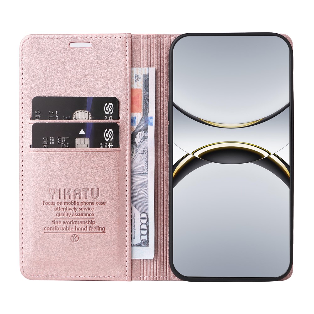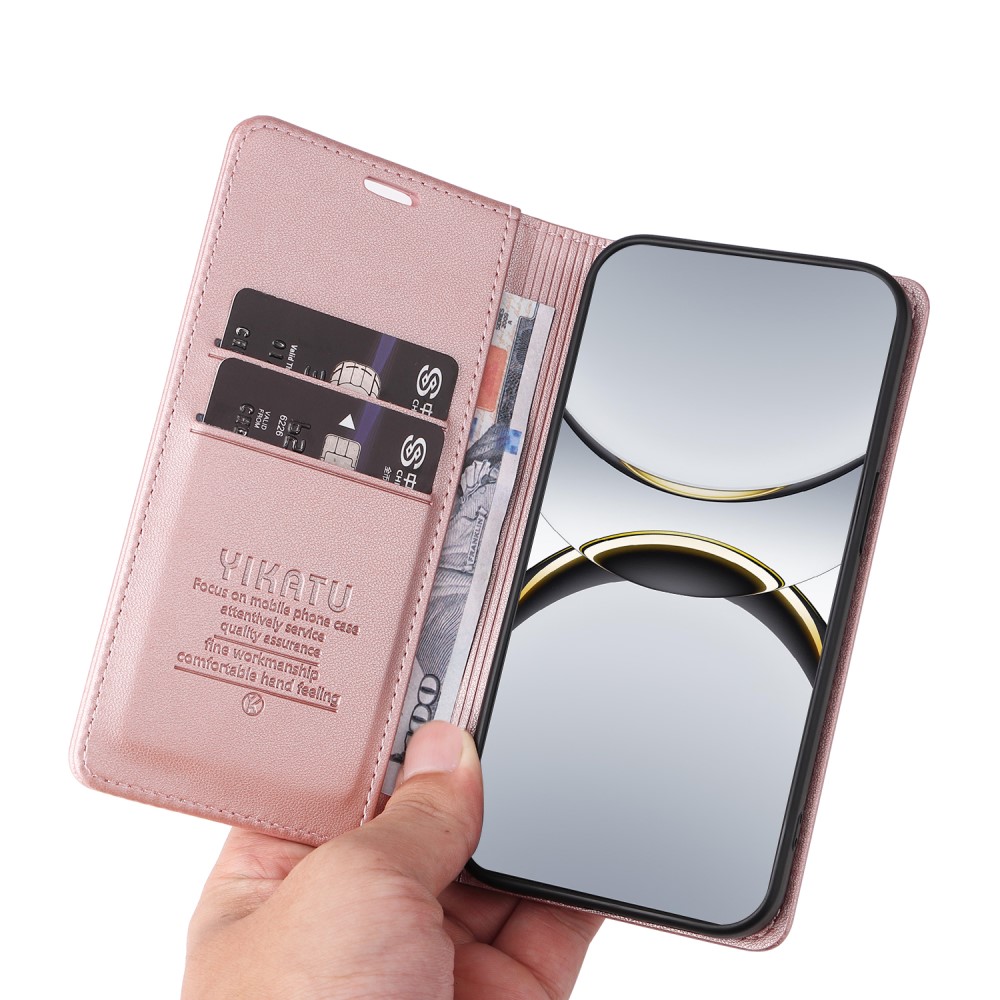 Θήκη Oppo Find X8 Pro 5G YIKATU Folio Series με βάση στήριξης, υποδοχή καρτών και μαγνητικό κούμπωμα Flip Wallet από συνθετικό δέρμα και TPU ροζ χρυσό