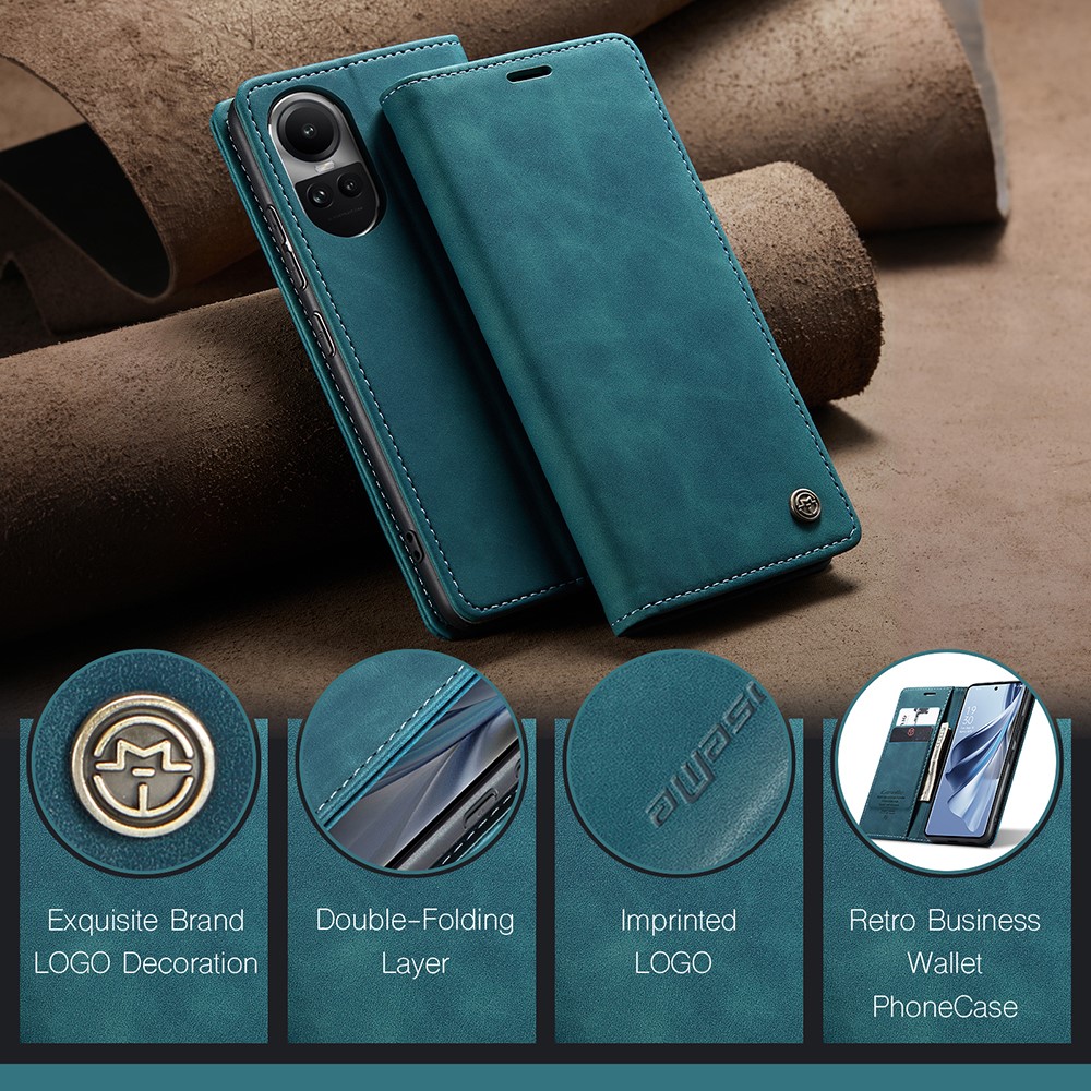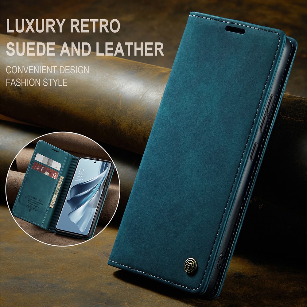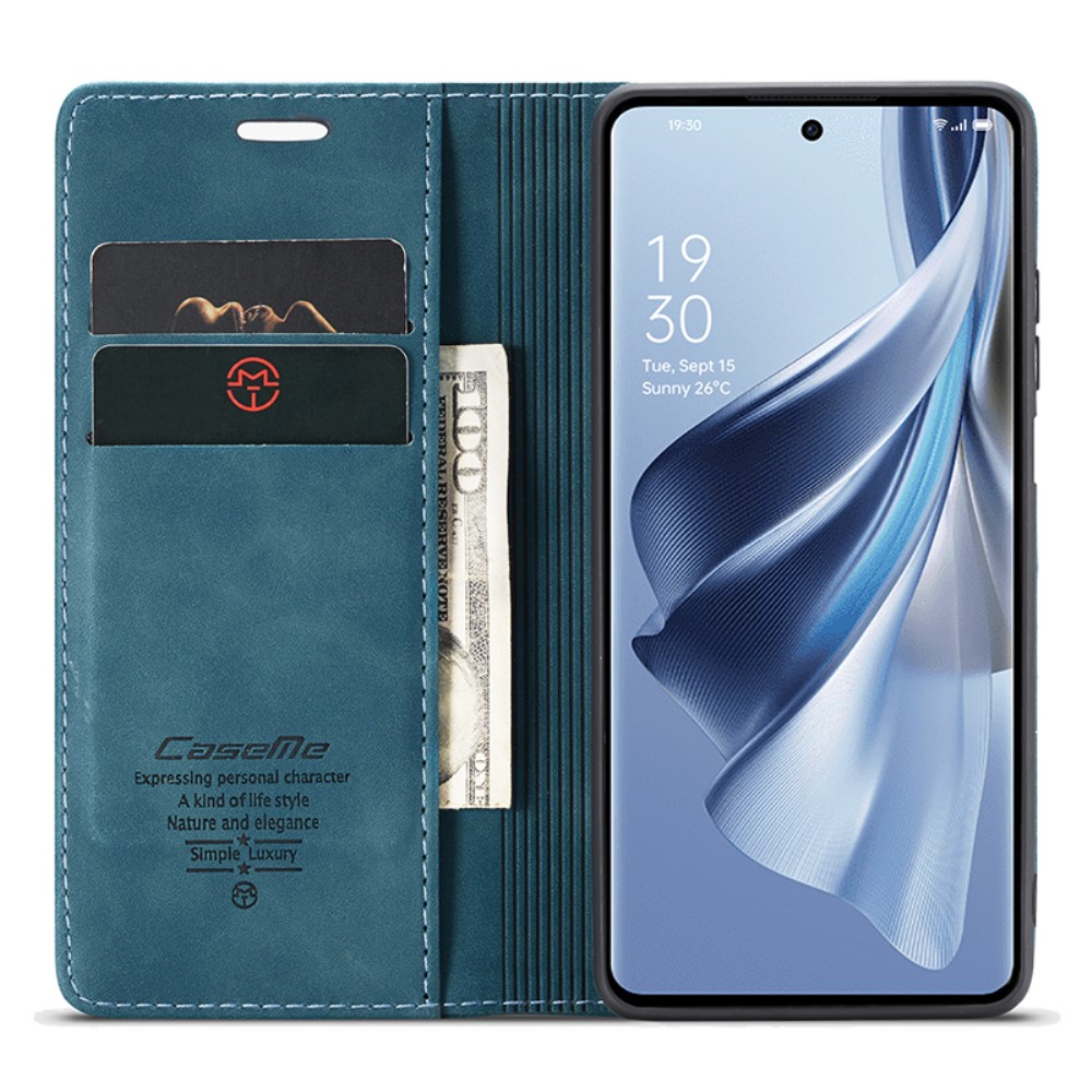 Θήκη Oppo Reno10 5G / Reno10 Pro 5G CASEME 013 Series Πορτοφόλι με βάση στήριξης, υποδοχές καρτών και μαγνητικό κούμπωμα από συνθετικό δέρμα και TPU μπλε
