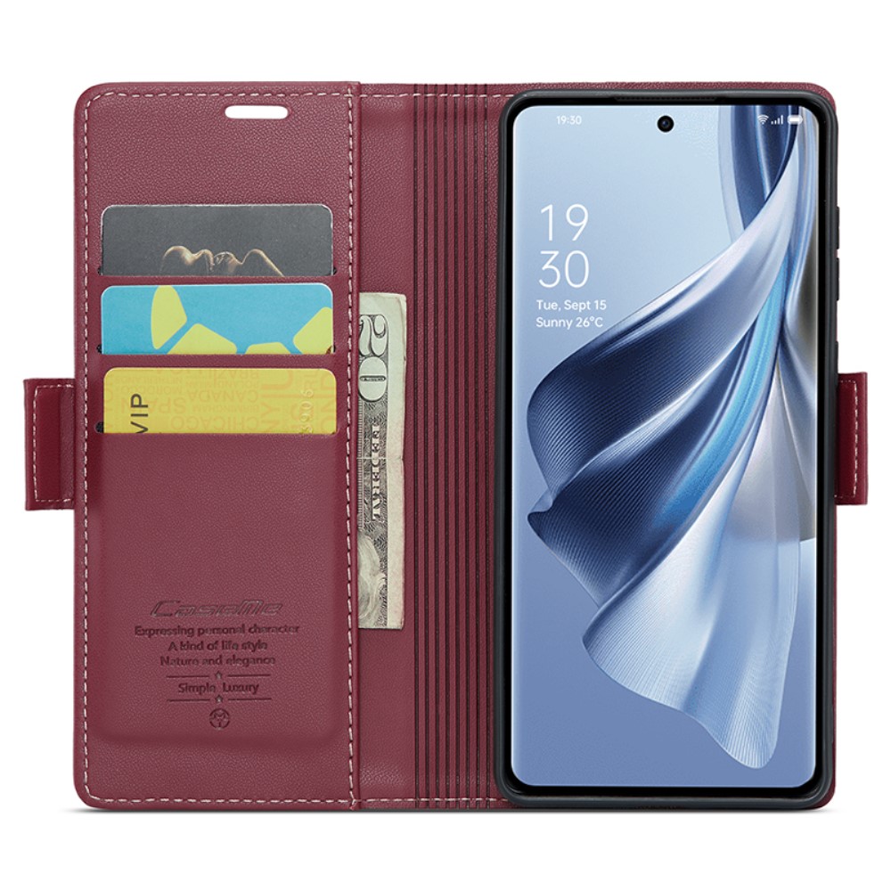 Θήκη Oppo Reno10 5G / Reno10 Pro 5G CASEME 023 Series Πορτοφόλι με βάση στήριξης, υποδοχές καρτών και μαγνητικό κούμπωμα από συνθετικό δέρμα και TPU μπορντό