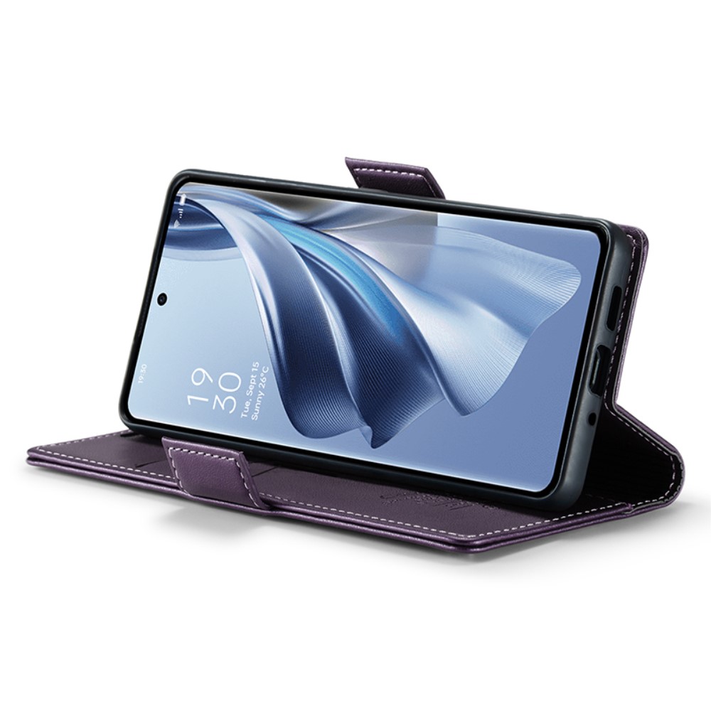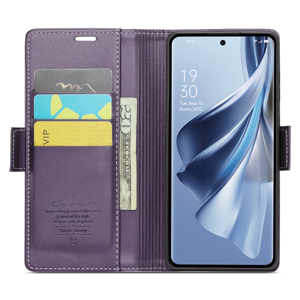 Θήκη Oppo Reno10 5G / Reno10 Pro 5G CASEME 023 Series Πορτοφόλι με βάση στήριξης, υποδοχές καρτών και μαγνητικό κούμπωμα από συνθετικό δέρμα και TPU μωβ