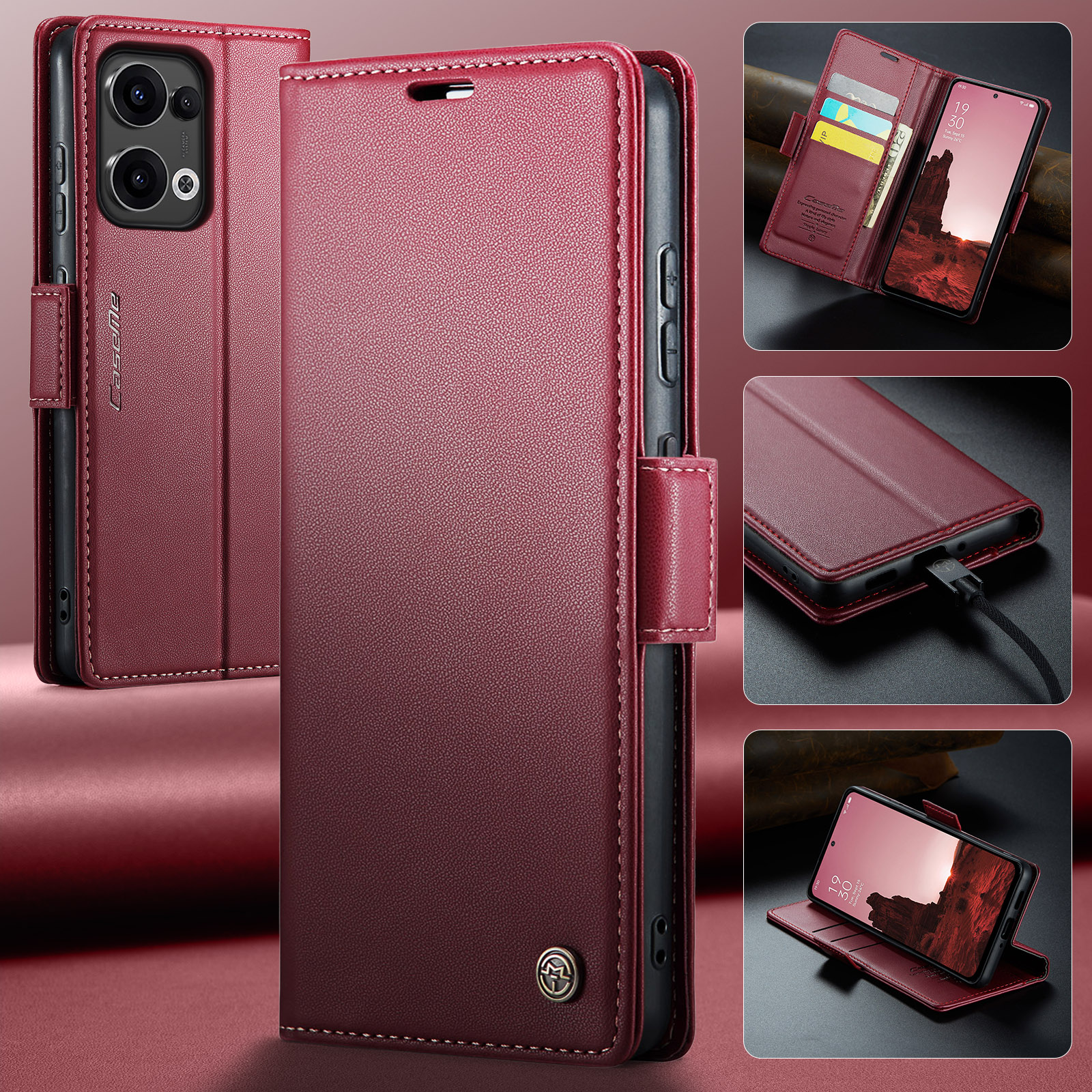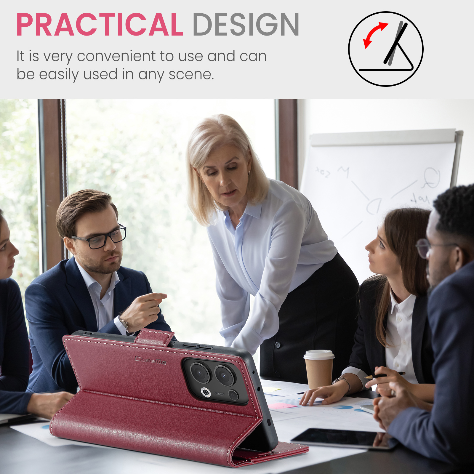 Θήκη Oppo Reno13 5G CASEME 023 Series Πορτοφόλι με βάση στήριξης, υποδοχές καρτών και μαγνητικό κούμπωμα από συνθετικό δέρμα και TPU κόκκινο