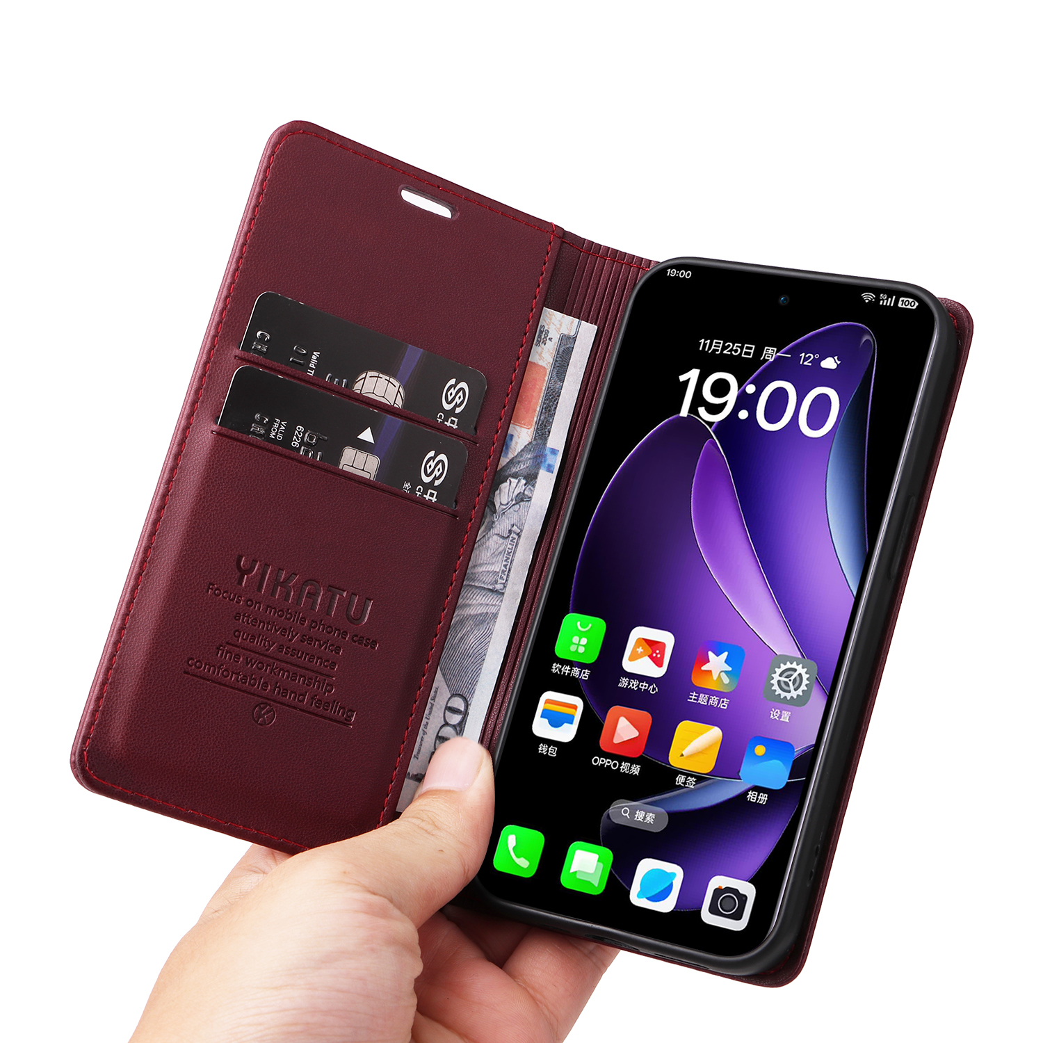 Θήκη Oppo Reno13 5G YIKATU Folio Series με βάση στήριξης, υποδοχή καρτών και μαγνητικό κούμπωμα Flip Wallet από συνθετικό δέρμα και TPU μπορντό / κόκκινο