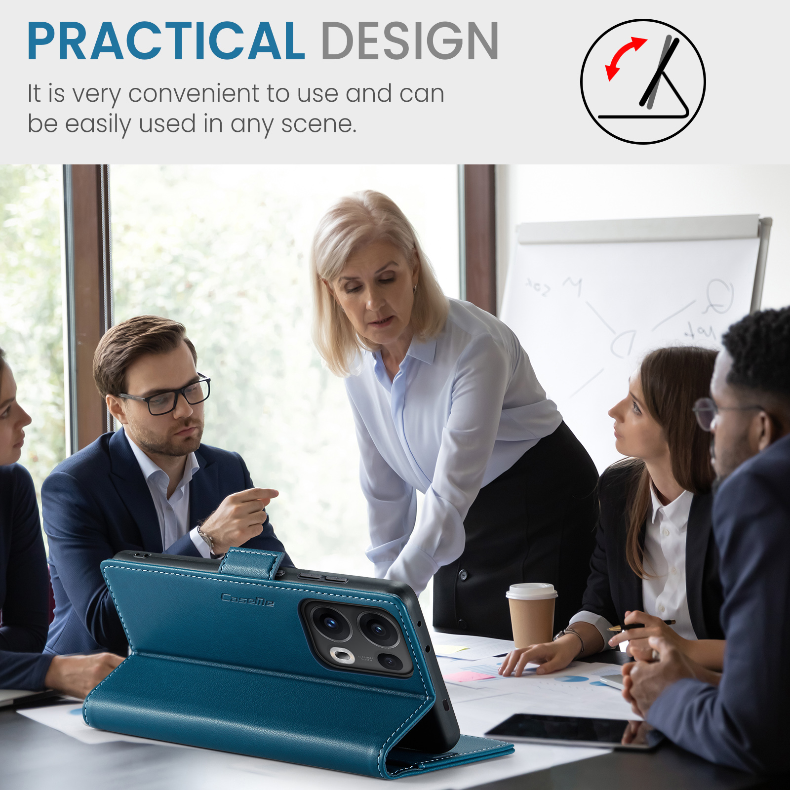 Θήκη Oppo Reno13 Pro 5G CASEME 023 Series Πορτοφόλι με βάση στήριξης, υποδοχές καρτών και μαγνητικό κούμπωμα από συνθετικό δέρμα και TPU μπλε