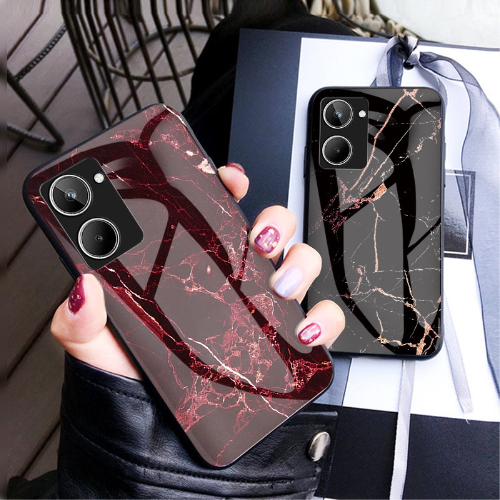 Θήκη Realme 10 OEM σχέδιο Marble με Πλάτη Tempered Glass TPU μαύρο