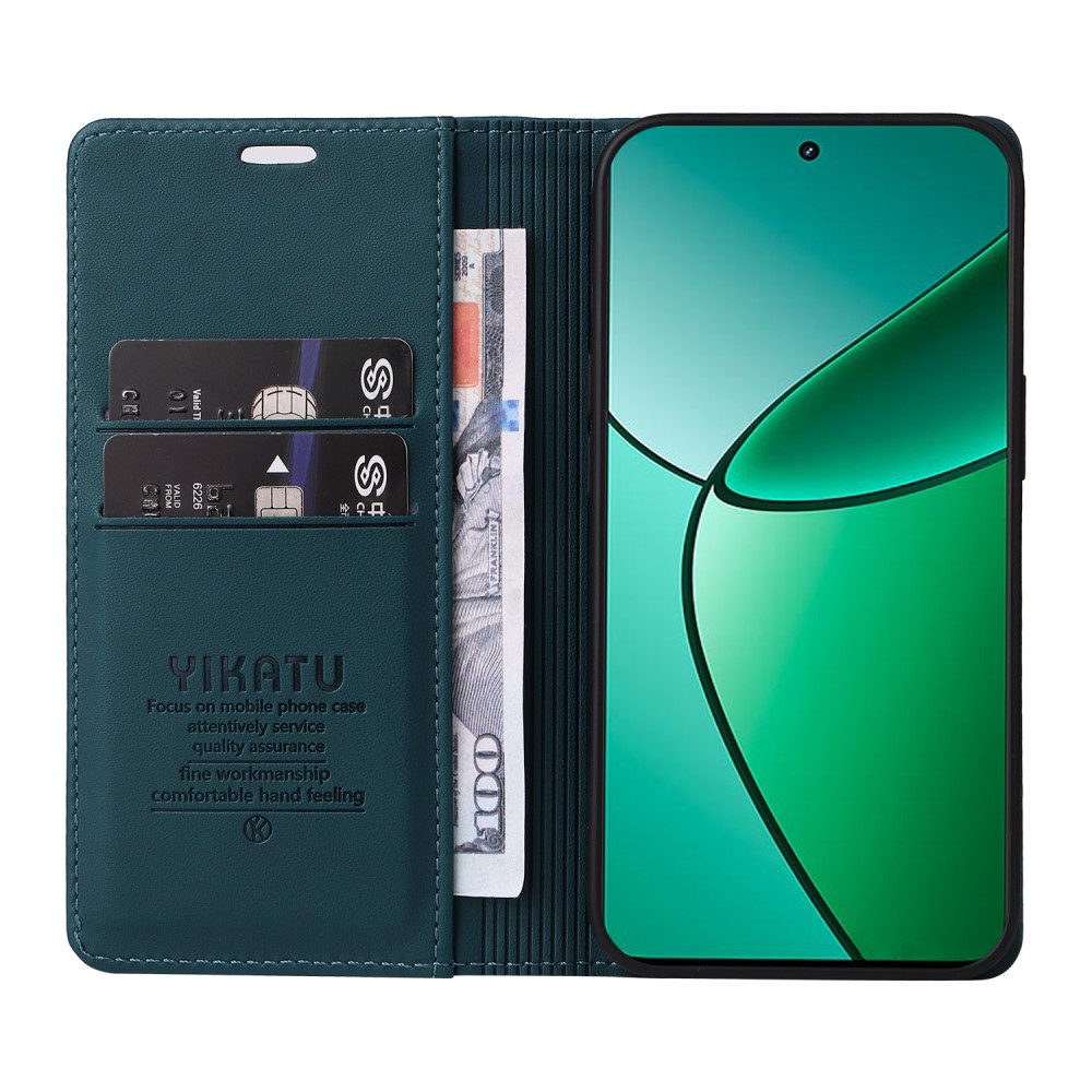 Θήκη Realme 12+ 5G YIKATU Folio Series με βάση στήριξης, υποδοχή καρτών και μαγνητικό κούμπωμα Flip Wallet από συνθετικό δέρμα και TPU πράσινο