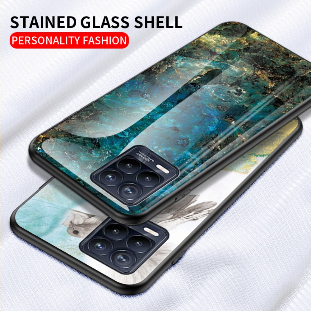 Θήκη Realme 8 / 8 Pro OEM σχέδιο Marble με Πλάτη Tempered Glass TPU σμαραγδί