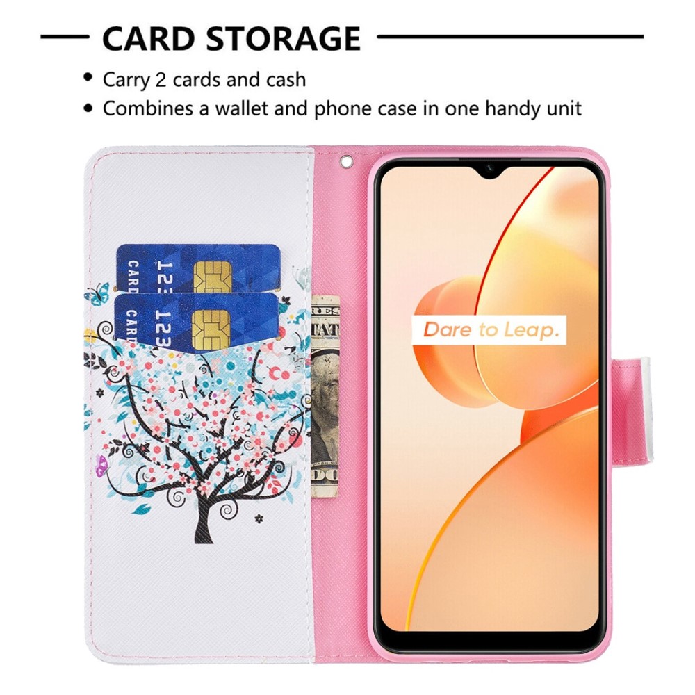 Θήκη Realme C31 OEM Flowered Tree με βάση στήριξης, υποδοχές καρτών και μαγνητικό κούμπωμα Flip Wallet από συνθετικό δέρμα και TPU