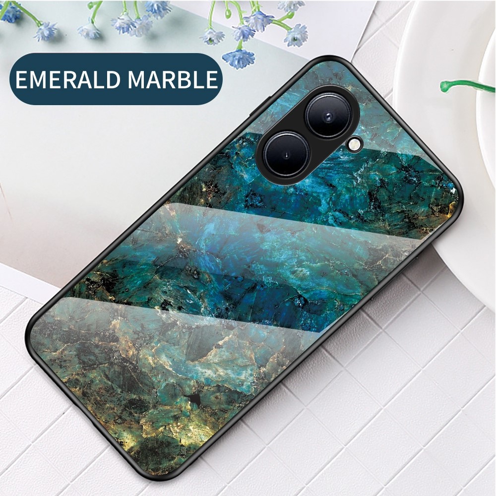 Θήκη Realme C33 OEM σχέδιο Marble με Πλάτη Tempered Glass TPU σμαραγδί