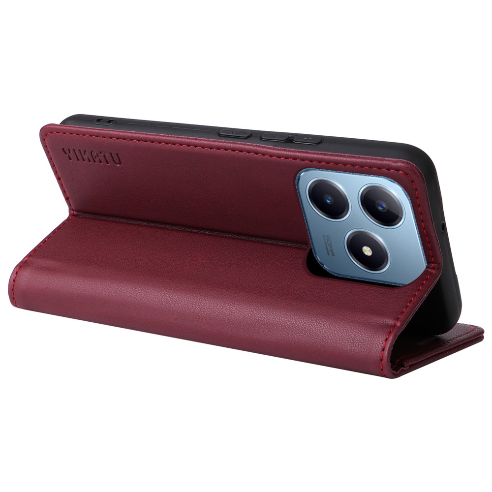 Θήκη Realme C61 / C63 / Note 60x YIKATU Folio Series με βάση στήριξης, υποδοχή καρτών και μαγνητικό κούμπωμα Flip Wallet από συνθετικό δέρμα και TPU κόκκινο σκούρο