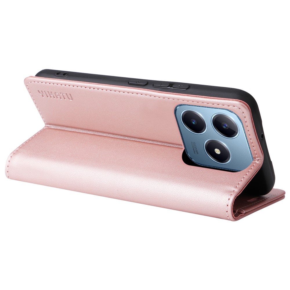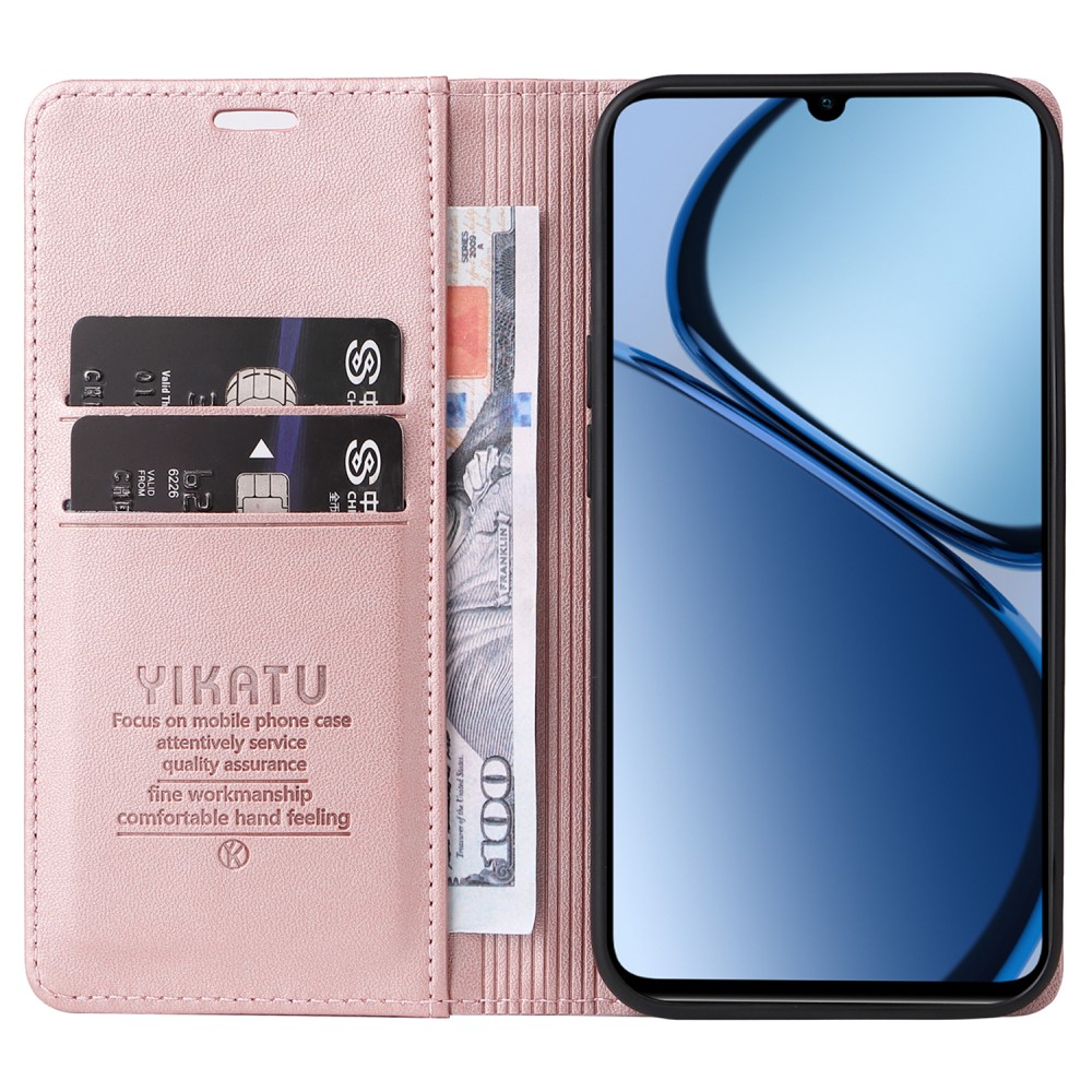 Θήκη Realme C61 / C63 / Note 60x YIKATU Folio Series με βάση στήριξης, υποδοχή καρτών και μαγνητικό κούμπωμα Flip Wallet από συνθετικό δέρμα και TPU ροζ χρυσό