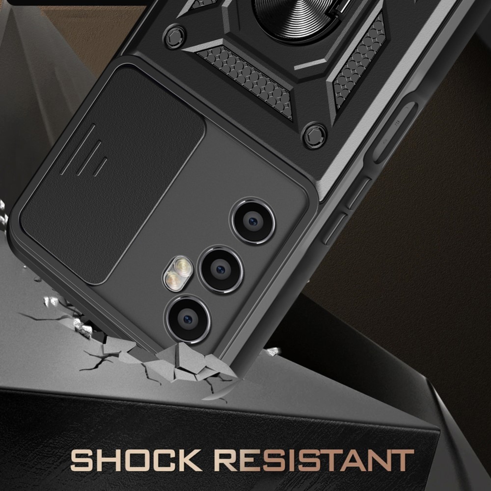 Θήκη Realme C65 Mad Mask Camshield Armor Guard Πλάτη με προστασία για την κάμερα, Kickstand και Βάση στήριξης από σκλήρό Premium TPU ασημί