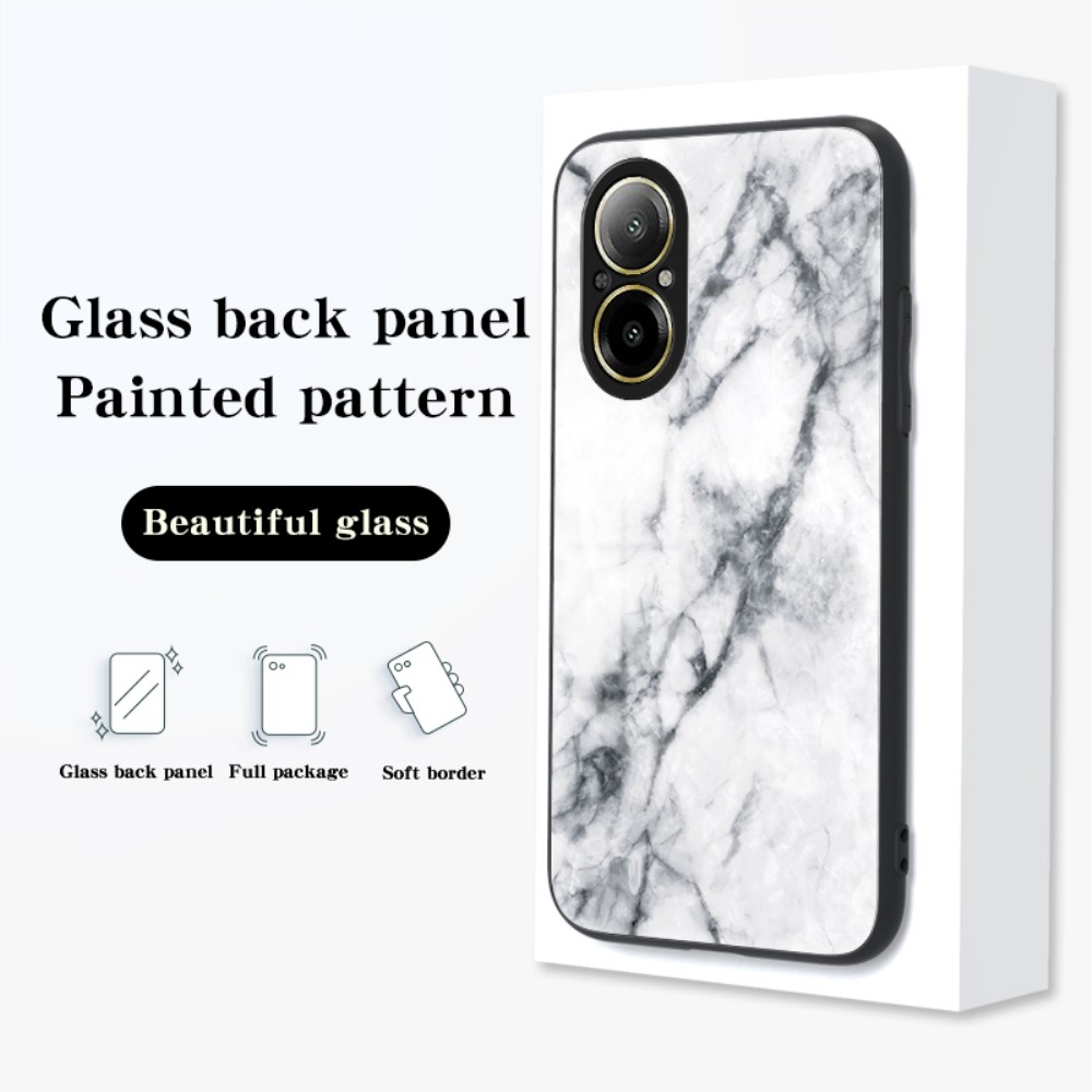 Θήκη Realme C67 4G OEM σχέδιο Marble με Πλάτη Tempered Glass TPU λευκό