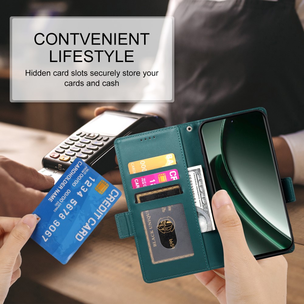 Θήκη Realme GT 6 5G / GT 6T 5G DIERFENG DF 010 Foldable Series με βάση στήριξης, υποδοχή καρτών και μαγνητικό κούμπωμα Flip Wallet από συνθετικό δέρμα και εσωτερικό TPU πράσινο σκούρο