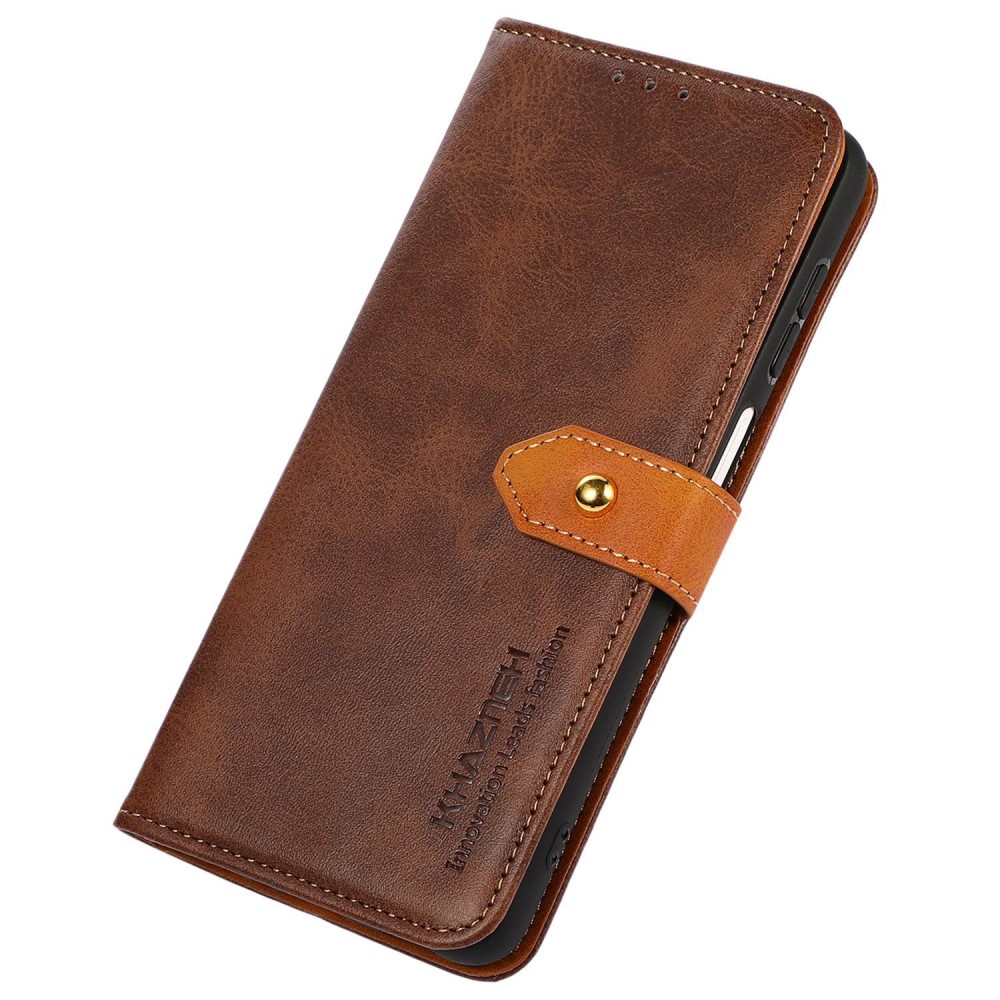 Θήκη Samsung Galaxy A04e / F04 KHAZNEH Leather Wallet Golden Clasp με βάση στήριξης, υποδοχές καρτών και μαγνητικό κούμπωμα καφέ