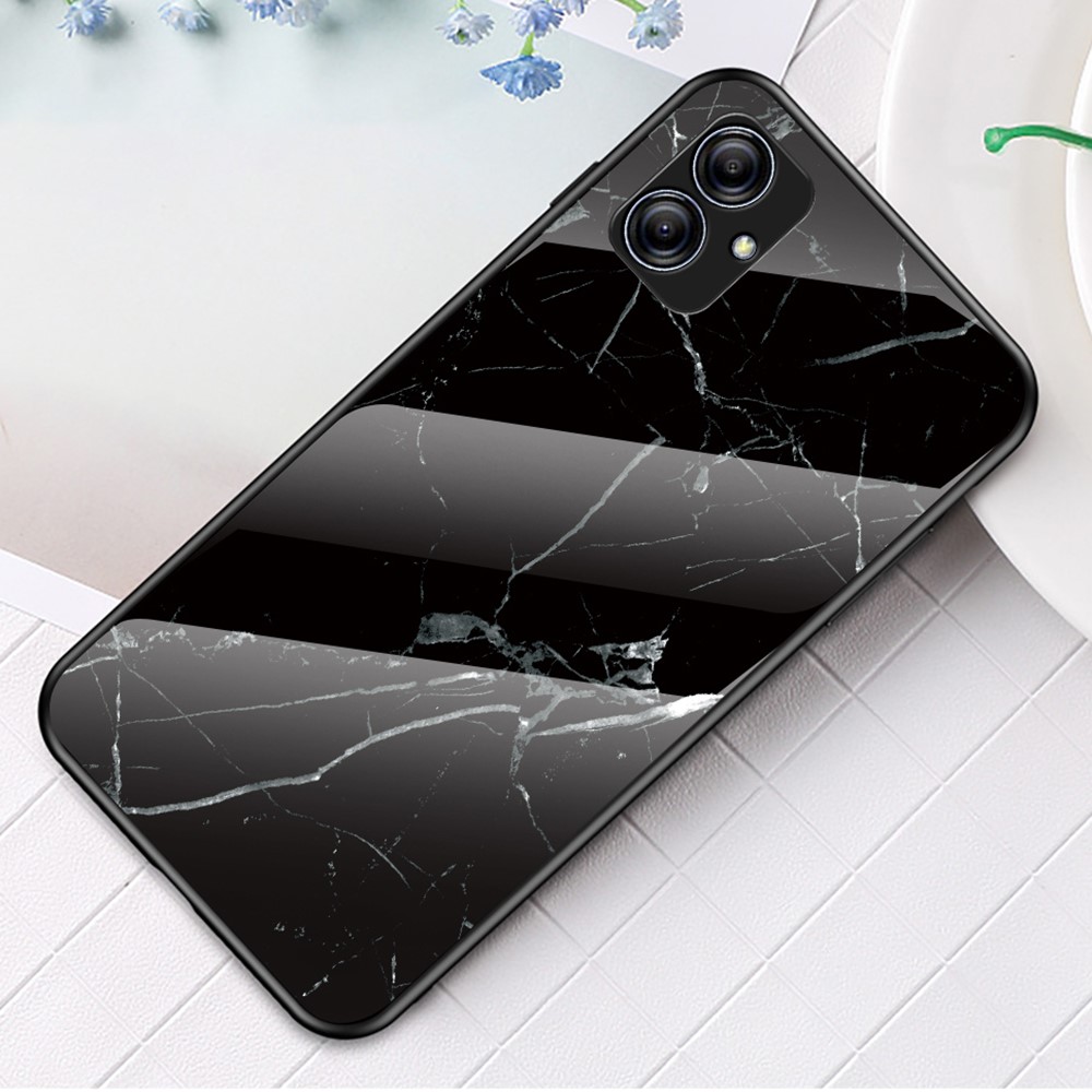 Θήκη Samsung Galaxy A04e / F04 OEM σχέδιο Marble με Πλάτη Tempered Glass TPU μαύρο
