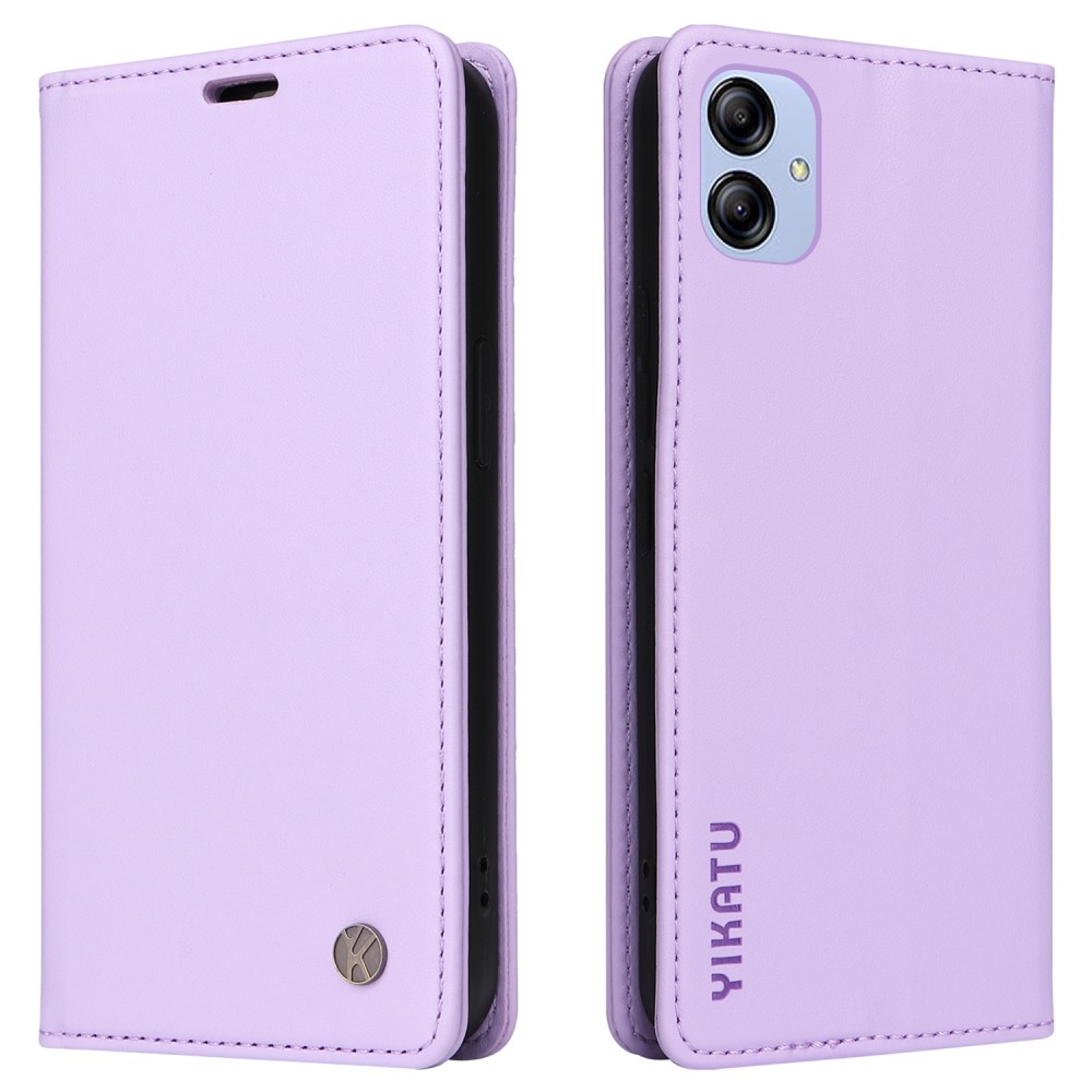 Θήκη Samsung Galaxy A04e / F04 Yikatu Folio Series με βάση στήριξης, υποδοχή καρτών και μαγνητικό κούμπωμα Flip Wallet από συνθετικό δέρμα και TPU μωβ ανοιχτό