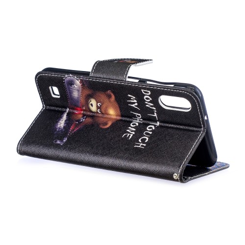 Θήκη Samsung Galaxy A10 OEM Angry bear with chainsaw με βάση στήριξης, υποδοχές καρτών και μαγνητικό κούμπωμα Flip Wallet δερματίνη