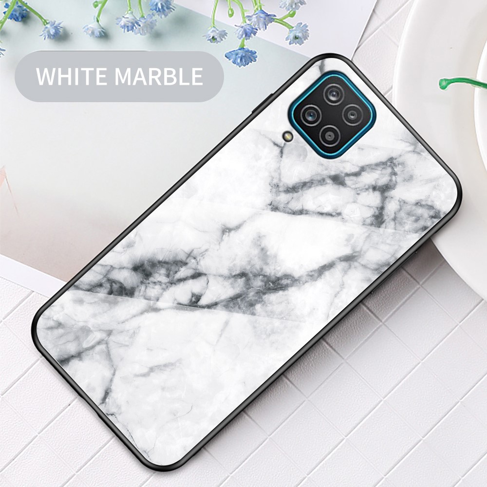 Θήκη Samsung Galaxy A12 / M12 OEM σχέδιο Marble με Πλάτη Tempered Glass TPU λευκό