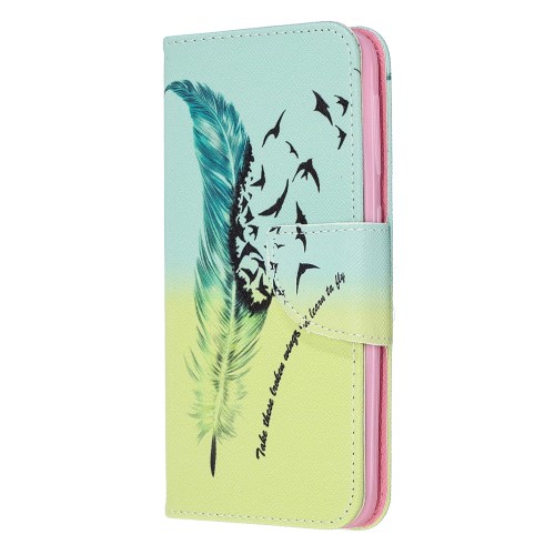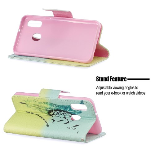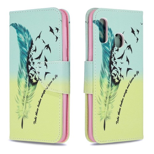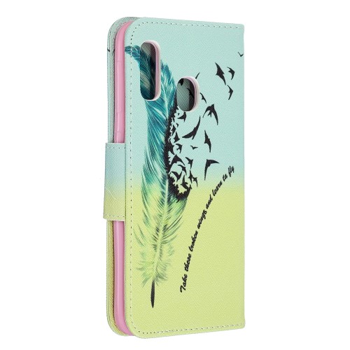 Θήκη Samsung Galaxy A20e OEM σχέδιο Feather and Birds με βάση στήριξης, υποδοχές καρτών και μαγνητικό κούμπωμα Flip Wallet δερματίνη