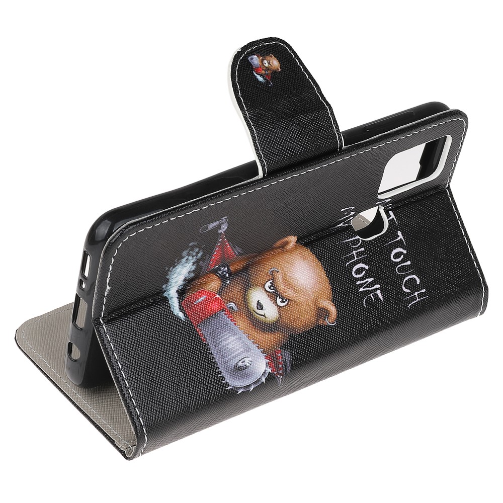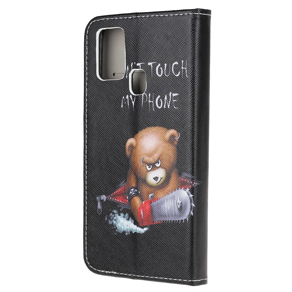 Θήκη Samsung Galaxy A21s OEM Angry bear with chainsaw με βάση στήριξης, υποδοχές καρτών και μαγνητικό κούμπωμα Flip Wallet από συνθετικό δέρμα και TPU