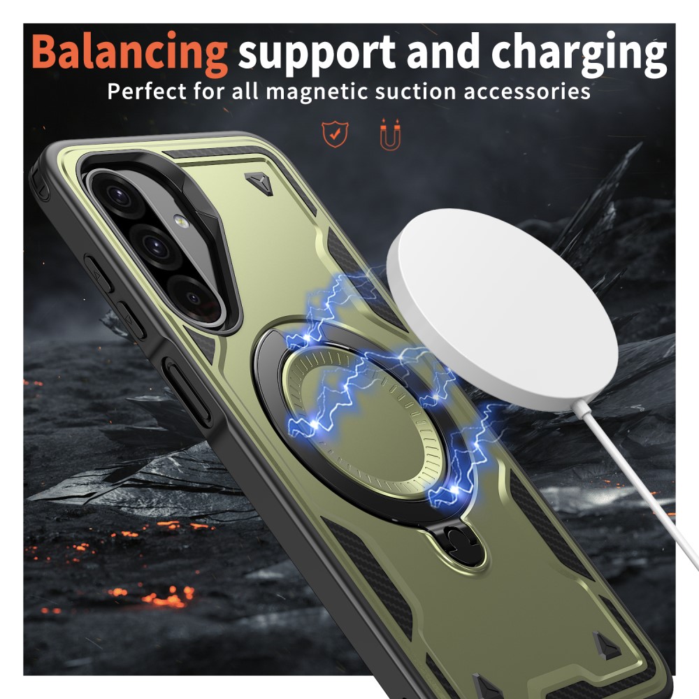 Θήκη Samsung Galaxy A26 5G / A17 5G Mad Mask Πλάτη Military Protection με Μαγνητικό δαχτυλίδι ,συμβατό με ασύρματη φόρτιση Magsafe και Βάση στήριξης TPU πράσινο