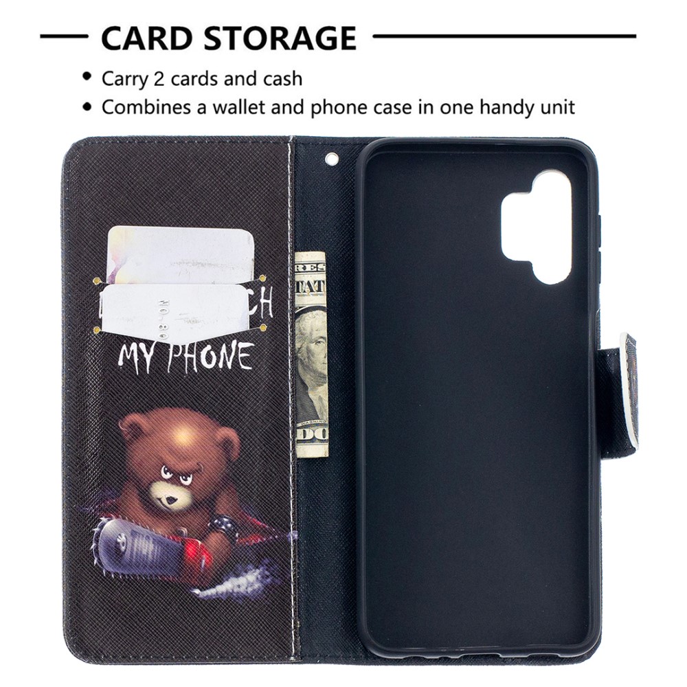 Θήκη Samsung Galaxy A32 5G OEM Angry bear with chainsaw με βάση στήριξης, υποδοχές καρτών και μαγνητικό κούμπωμα Flip Wallet από συνθετικό δέρμα και TPU