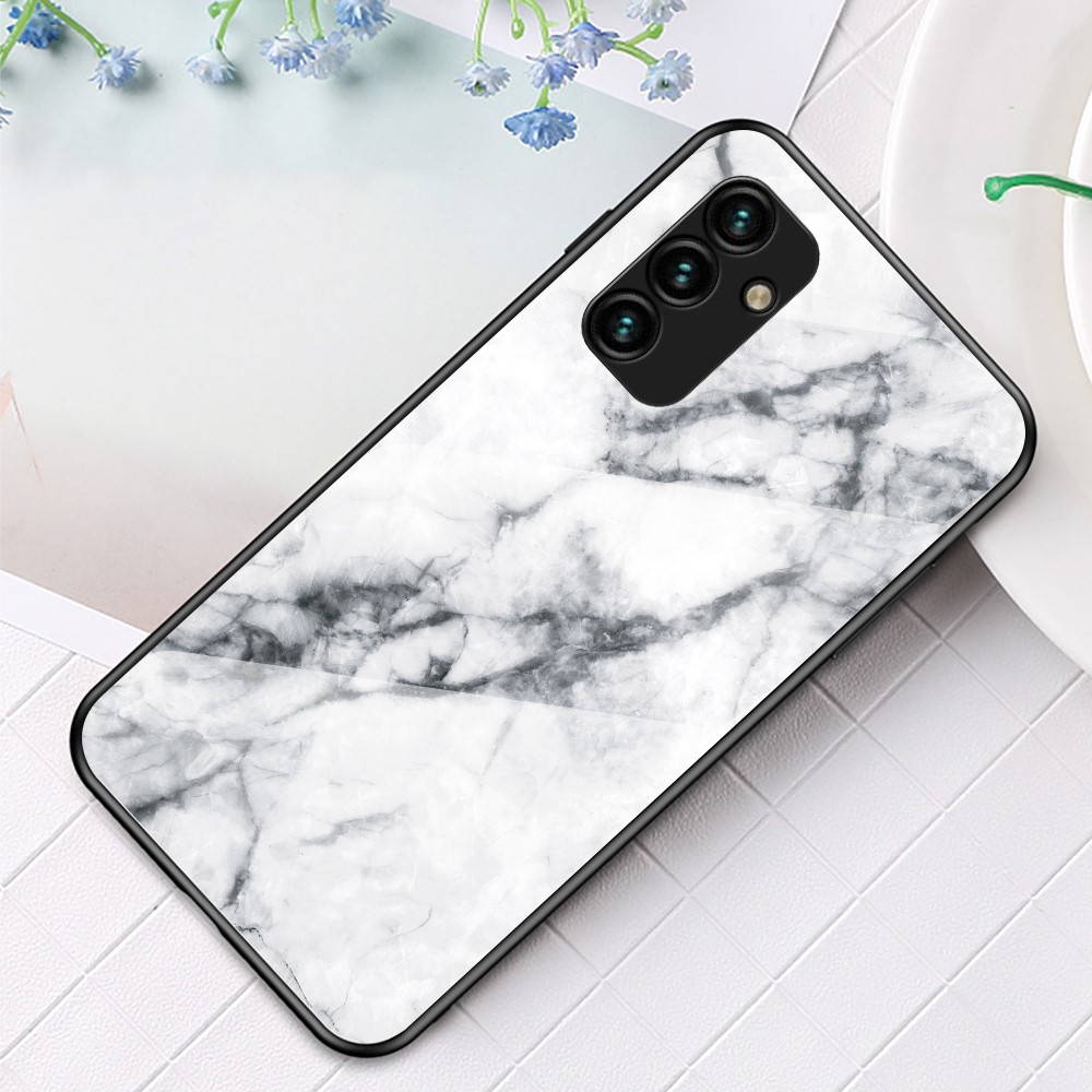 Θήκη Samsung Galaxy A34 5G OEM σχέδιο Marble με Πλάτη Tempered Glass TPU λευκό