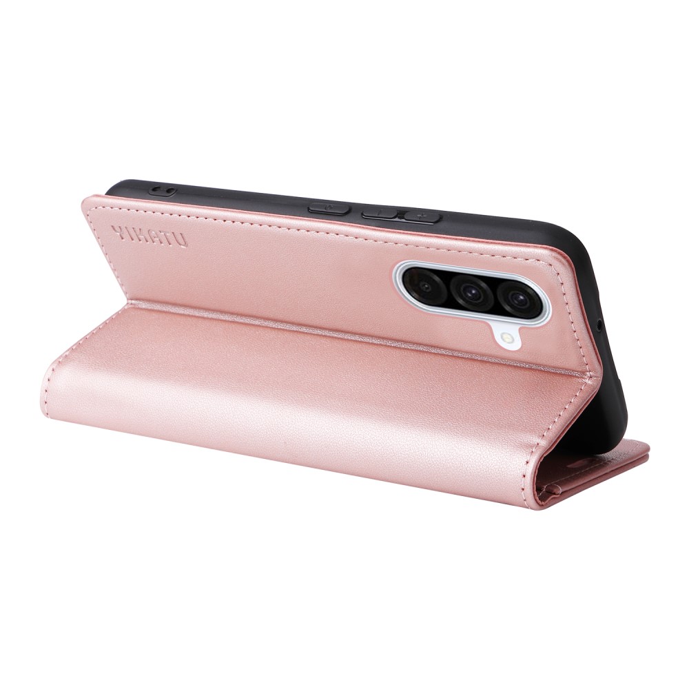 Θήκη Samsung Galaxy A36 YIKATU Folio Series v5 με βάση στήριξης, υποδοχή καρτών και μαγνητικό κούμπωμα Flip Wallet από συνθετικό δέρμα και TPU ροζ χρυσό