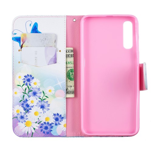 Θήκη Samsung Galaxy A50 / A30s OEM σχέδιο Blue Butterflies με βάση στήριξης, υποδοχές καρτών και μαγνητικό κούμπωμα Flip Wallet δερματίνη