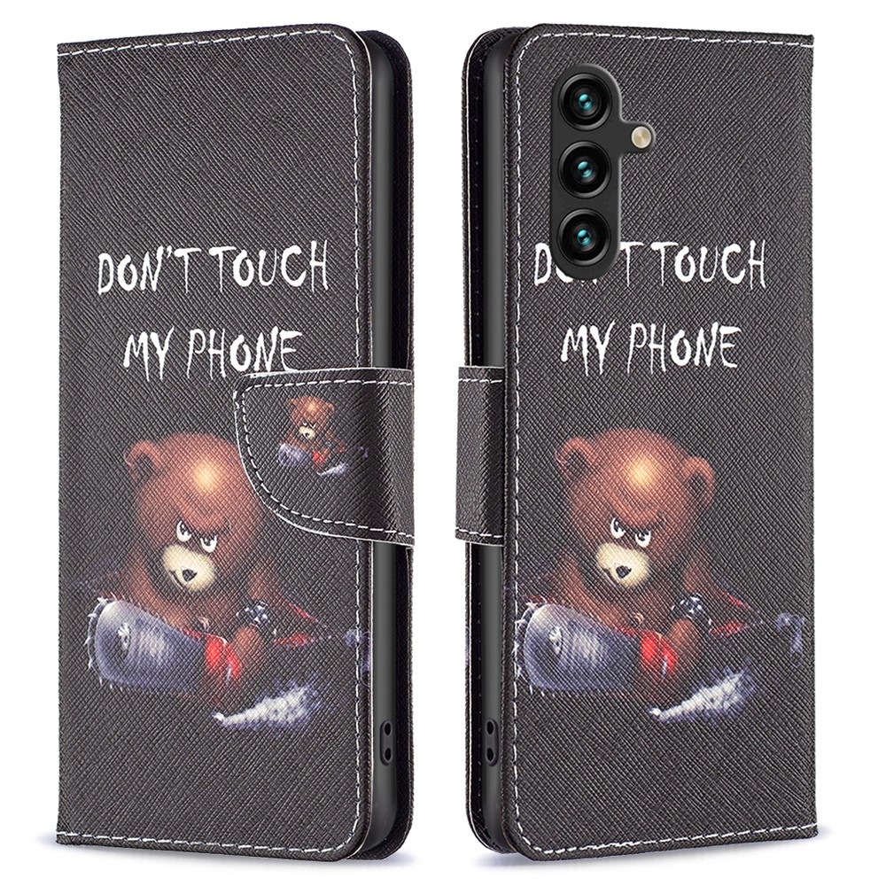 Θήκη Samsung Galaxy A55 5G OEM Angry bear with chainsaw με βάση στήριξης, υποδοχές καρτών και μαγνητικό κούμπωμα Flip Wallet από συνθετικό δέρμα και TPU