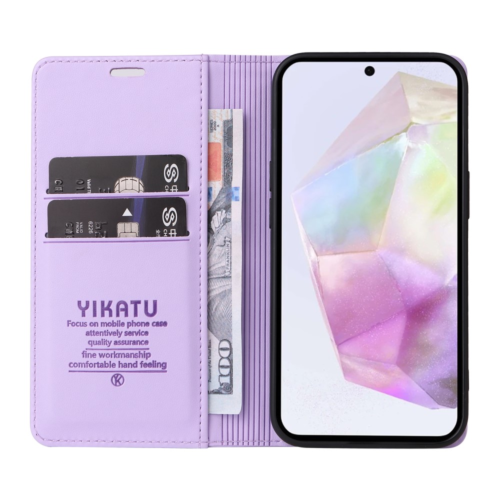 Θήκη Samsung Galaxy A56 YIKATU Folio Series v5 με βάση στήριξης, υποδοχή καρτών και μαγνητικό κούμπωμα Flip Wallet από συνθετικό δέρμα και TPU μωβ ανοιχτό