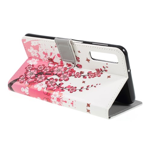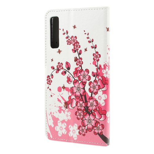 Θήκη Samsung Galaxy A7 (2018) OEM σχέδιο Peach Flower με βάση στήριξης, υποδοχές καρτών και μαγνητικό κούμπωμα Flip Wallet δερματίνη