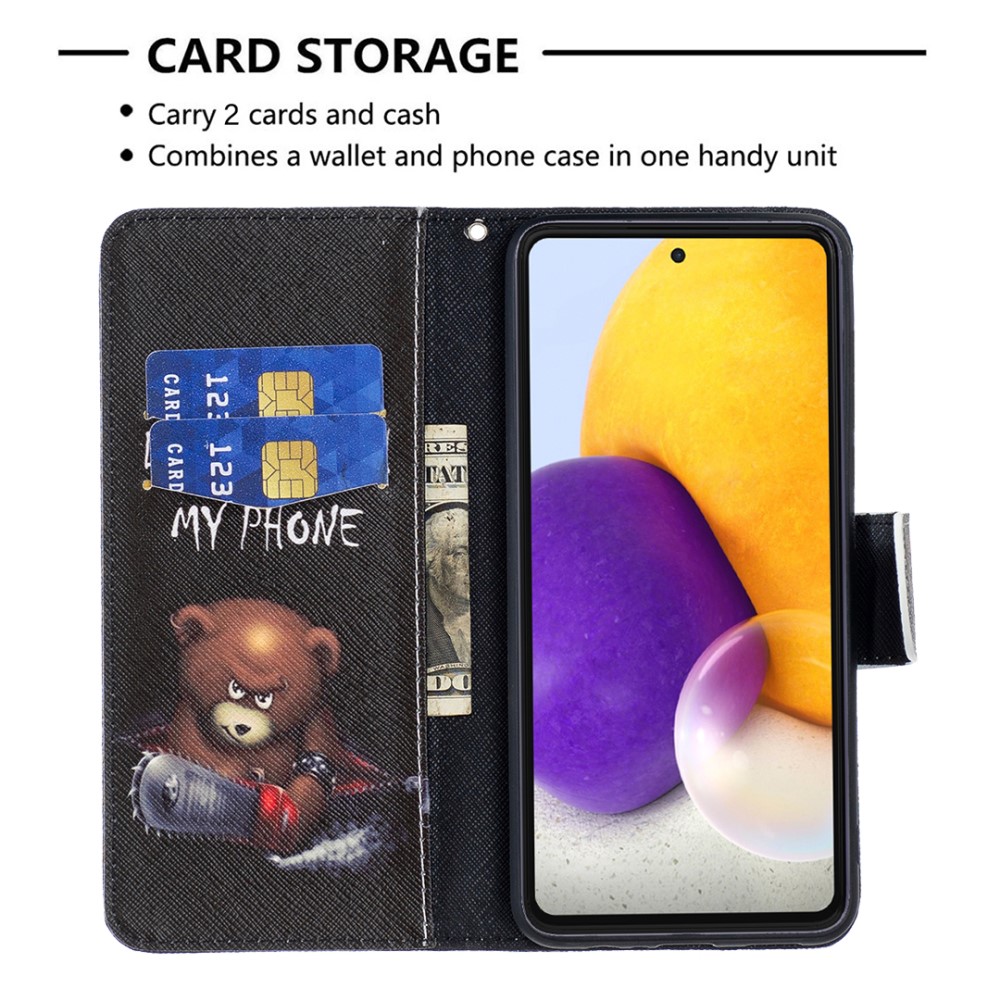Θήκη Samsung Galaxy A73 5G OEM Angry bear with chainsaw με βάση στήριξης, υποδοχές καρτών και μαγνητικό κούμπωμα Flip Wallet από συνθετικό δέρμα και TPU