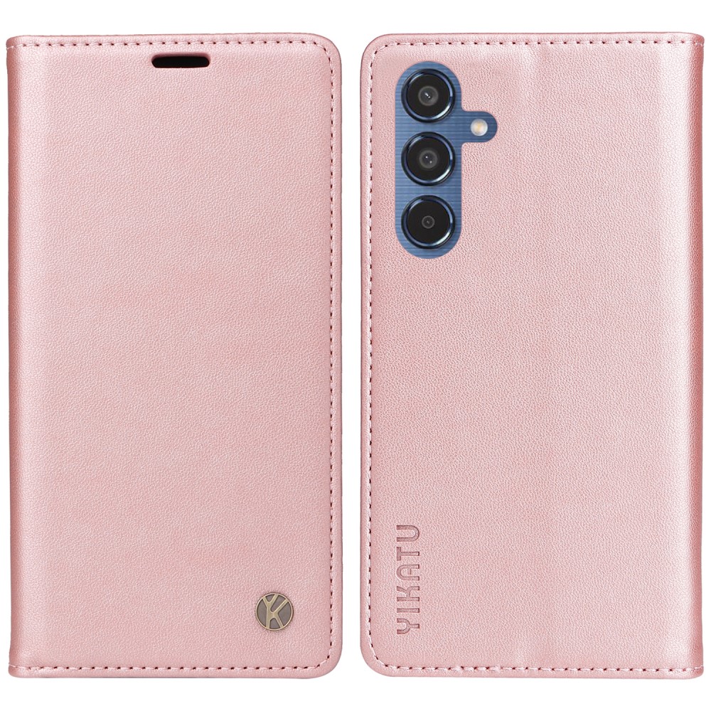 Θήκη Samsung Galaxy M35 5G YIKATU Folio Series με βάση στήριξης, υποδοχή καρτών και μαγνητικό κούμπωμα Flip Wallet από συνθετικό δέρμα και TPU ροζ χρυσό