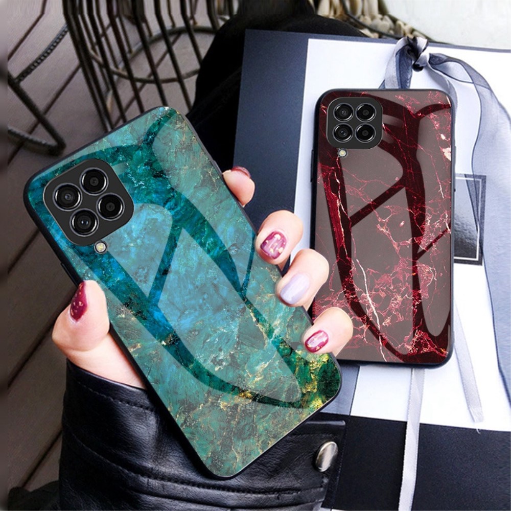 Θήκη Samsung Galaxy M53 5G OEM σχέδιο Marble με Πλάτη Tempered Glass TPU μαύρο